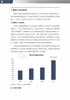 相比發(fā)達(dá)國(guó)家的精細(xì)化率水平,我國(guó)的精細(xì)化工行業(yè)仍具有較大的提升空間。我國(guó)精細(xì)化工行業(yè)尚未形成完整的行業(yè)體系,精細(xì)化率較低。目前發(fā)達(dá)國(guó)家的精細(xì)化率基本上在60%~70%,而我國(guó)大概只有其一半的水準(zhǔn)。