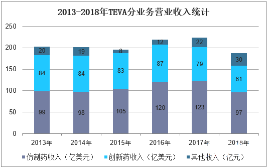 TEVA是全球第一大仿制藥企業(yè),分業(yè)務(wù)來看,2018年仿制藥收入為97億美元,創(chuàng)新藥收入61億美元,其他收入30億元。