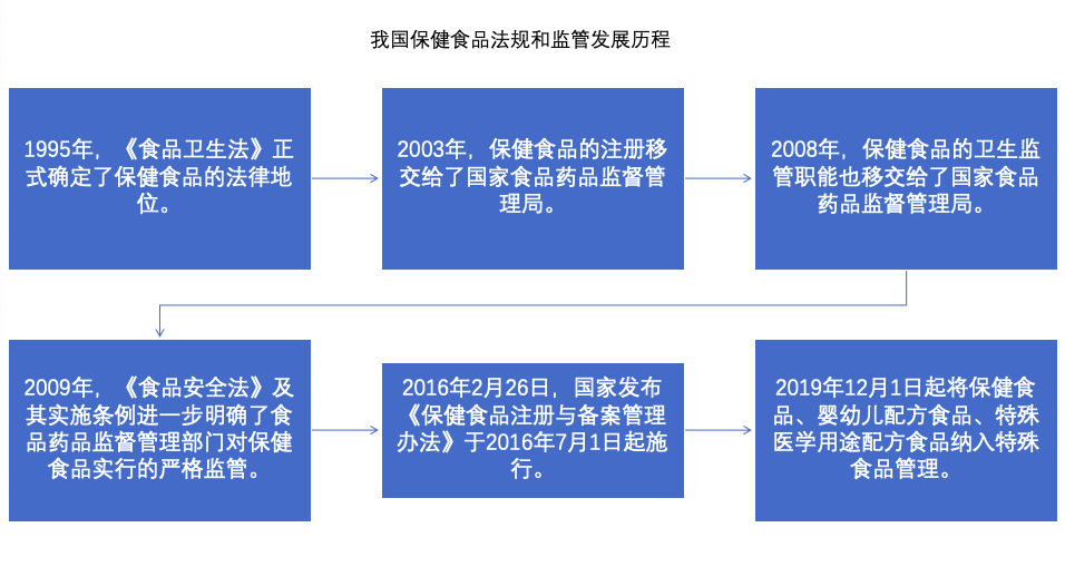 2016年7月1日《保健食品注冊(cè)與備案管理辦法》正式施行,嚴(yán)格定義:保健食品是指聲稱具有特定保健功能或者以補(bǔ)充維生素、礦物質(zhì)為目的的食品,即適宜于特定人群食用,具有調(diào)節(jié)機(jī)體功能,不以治療疾病為目的,并且對(duì)人體不產(chǎn)生任何急性、亞急性或者慢性危害的食品。