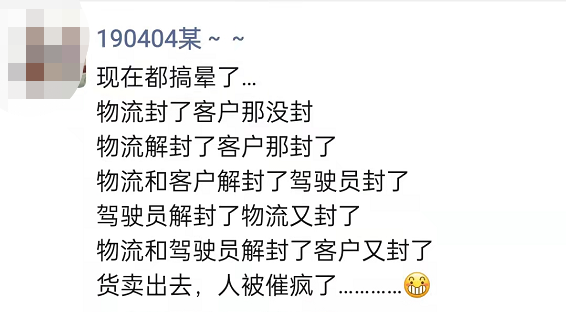 比如有些地方不斷加碼通行要求,導(dǎo)致在高速路口長(zhǎng)時(shí)間滯留;多地拒絕上海牌照貨車進(jìn)入,即便健康碼、核酸報(bào)告、抗原檢測(cè)和通行證都齊全仍被勸返或隔離;外地尤其是上海過(guò)來(lái)的貨車,下高速流程手續(xù)非常復(fù)雜,拍照、換證實(shí)際上都需要司機(jī)下車,存在比較大的接觸風(fēng)險(xiǎn),登記完又封門不讓下車,實(shí)際上有些形式化;因有司機(jī)確診,多個(gè)高速服務(wù)區(qū)關(guān)閉,上海境內(nèi)也多區(qū)封閉,司機(jī)只好停應(yīng)急車道,好幾公里,很危險(xiǎn);同時(shí),因沒(méi)有飯店和超市營(yíng)業(yè),滯留高速路和公路上的司機(jī)們無(wú)處購(gòu)買食物和飲用水;有人天天啃方便面,啃得兩眼冒火星了。