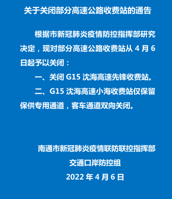 3.G4221 滬武高速,關(guān)閉溧水開(kāi)發(fā)區(qū)東雙向出口。4.S55 寧宣高速,關(guān)閉溧水開(kāi)發(fā)區(qū)雙向出口;關(guān)閉和鳳主線雙向出入口。S55 寧宣高速,石臼湖服務(wù)區(qū)雙向關(guān)閉;G25 長(zhǎng)深高速,東廬山服務(wù)區(qū)雙向關(guān)閉。1.G15 沈海高速,關(guān)閉連云港西、新壩、灌云北雙向出入口。2.G25 長(zhǎng)深高速,關(guān)閉贛榆南、大浦、宋跳、花果山機(jī)場(chǎng)、灌云南、灌南雙向出入口;關(guān)閉寧海往杭州方向入口及往山東方向出口;G25 長(zhǎng)深高速,關(guān)閉灌云西往杭州出口及連云港方向入口。3.G30 連霍高速,關(guān)閉云臺(tái)、平明、東海西雙向出入口。G15 沈海高速,海州灣服務(wù)區(qū)、花果山服務(wù)區(qū)、灌云服務(wù)區(qū)雙向關(guān)閉;G30 連霍高速,東海服務(wù)區(qū)雙向關(guān)閉。1、G2 京滬高速,關(guān)閉新沂東雙向出入口。2、G30 連霍高速,關(guān)閉邳州西、呂梁雙向出口。3、S49 新?lián)P高速高速,關(guān)閉新沂南、馬陵山雙向出口。G30 連霍高速,彭城服務(wù)區(qū)往鄭州方向關(guān)閉;G3 京臺(tái)高速,劉集服務(wù)區(qū)雙向關(guān)閉。1、G2 京滬高速,關(guān)閉淮安北、淮安東雙向出入口。2、G25 長(zhǎng)深高速,關(guān)閉高溝雙向出口;關(guān)閉漣水往杭州出口;關(guān)閉淮陰往連云港方向入口及往杭州方向出口;關(guān)閉五里牌雙向出入口。3、G1516 鹽洛高速,關(guān)閉車橋、凌橋雙向出入口。4、S49 新?lián)P高速,關(guān)閉盱眙北往宿遷方向入口,往南京方向出口;關(guān)閉黃花塘雙向出入口。5、S22 鹽蚌高速,關(guān)閉東陽(yáng)雙向出口。G2 京滬高速,川星服務(wù)區(qū)往北京方向關(guān)閉;G2 京滬高速,六洞服務(wù)區(qū)往上海方向關(guān)閉。1.G15 沈海高速,關(guān)閉六套、蔡橋、興橋、白駒、富安雙向出口。2.G1516 鹽洛高速,關(guān)閉海豐雙向出入口;關(guān)閉秦南、建湖東雙向出口。3.G1515 鹽靖高速,關(guān)閉青墩、張莊、大岡雙向出口。4.S35 阜溧高速,關(guān)閉東溝、建湖西雙向出口。G15 沈海高速,大豐服務(wù)區(qū)雙向關(guān)閉;G1516 鹽洛高速,九龍口雙向關(guān)閉。1.G2 京滬高速,關(guān)閉沭陽(yáng)北、胡集雙向出入口。2.S49 新?lián)P高速,關(guān)閉梅花、泗洪雙向出入口。3.G2513 淮徐高速,關(guān)閉洋河雙向出口;關(guān)閉宿遷西雙向出入口。G2 京滬高速,沭陽(yáng)服務(wù)區(qū)往北京方向關(guān)閉;G2513 淮徐高速,洋河服務(wù)區(qū)往徐州方向關(guān)閉。1.G2 京滬高速,關(guān)閉涇河、真武、江都東雙向出入口;關(guān)閉寶應(yīng)、高郵往上海方向出入口;關(guān)閉浦頭雙向出口。2.S28 啟揚(yáng)高速,關(guān)閉丁伙、郭村雙向出入口。3.S49 新?lián)P高速,關(guān)閉蜀岡主線、陳集雙向出入口。4.G40 滬陜高速,關(guān)閉蔣王雙向出入口。5.S39 江宜高速,關(guān)閉李典頭橋雙向出入口。G2 京滬高速,范水服務(wù)區(qū)往上海方向關(guān)閉;G2 京滬高速,高郵服務(wù)區(qū)往北京方向關(guān)閉;S49 新?lián)P高速,陳集服務(wù)區(qū)雙向關(guān)閉;S39 江宜高速,揚(yáng)州廣陵服務(wù)區(qū)往宜興方向關(guān)閉;G40 滬陜高速,儀征服務(wù)區(qū)雙向關(guān)閉。1.G1515 鹽靖高速,關(guān)閉安豐、新街雙向出口。2.G40 滬陜高速,關(guān)閉廣陵、季市雙向出入口 。3.S28 啟揚(yáng)高速,關(guān)閉泰州北雙向出入口。4.S35 阜溧高速,關(guān)閉俞垛、大泗雙向出口;關(guān)閉高港雙向出入口。G2 京滬高速,宣堡服務(wù)區(qū)、廣陵服務(wù)區(qū)雙向關(guān)閉;S35 阜溧高速,大泗服務(wù)區(qū)雙向關(guān)閉。1、G15 沈海高速,關(guān)閉劉橋雙向出口;關(guān)閉先鋒雙向出入口。2、G40 滬陜高速,關(guān)閉疊石橋雙向出口;關(guān)閉大生、九華雙向出入口;關(guān)閉啟東東雙向入口;關(guān)閉葛市往南京方向出入口;如皋港往上海方向出入口。3、S79 南通支線,關(guān)閉平潮往南京方向入口,往南通方向出口。4、S28 啟揚(yáng)高速,關(guān)閉如皋東、馬塘、海門港雙向出口;關(guān)閉合作、南陽(yáng)雙向出入口。5、S15 洋通高速,關(guān)閉騎岸雙向出口。G15 沈海高速,如皋服務(wù)區(qū)、先鋒服務(wù)區(qū)雙向關(guān)閉;蘇通大橋服務(wù)區(qū)往南通方向關(guān)閉。1.G42 滬蓉高速,關(guān)閉句容、河陽(yáng)雙向出口。2.G4011 揚(yáng)溧高速,關(guān)閉鎮(zhèn)江西、上黨雙向出口。3.G4221 滬武高速,關(guān)閉天王雙向出入口。S35 阜溧高速關(guān)閉丹陽(yáng)北、鎮(zhèn)江新區(qū)東、高橋雙向出口;關(guān)閉揚(yáng)中雙向出入口。G42 滬蓉高速,竇莊服務(wù)區(qū)雙向關(guān)閉。1.G42 滬蓉高速,關(guān)閉常州雙向出入口。2.G4221 滬武高速,關(guān)閉嘉澤、滆湖、戚墅堰雙向出入口。3.G25 長(zhǎng)深高速,關(guān)閉曹山雙向出入口。4.G4012 溧寧高速,關(guān)閉南渡雙向出口。5.S35 阜溧高速,關(guān)閉儒林、長(zhǎng)蕩湖雙向出入口。6.S39 江宜高速,關(guān)閉孟河往宜興方向出口;關(guān)閉春江、龍城大道、武進(jìn)經(jīng)發(fā)區(qū)、武高新西雙向出入口;關(guān)閉和橋雙向出口。7.S58 滬常高速,關(guān)閉運(yùn)村雙向出入口。S68 溧蕪高速,關(guān)閉湯橋雙向出入口。G4221 滬武高速,茅山服務(wù)區(qū)雙向關(guān)閉;G25 長(zhǎng)深高速,天目湖服務(wù)區(qū)雙向關(