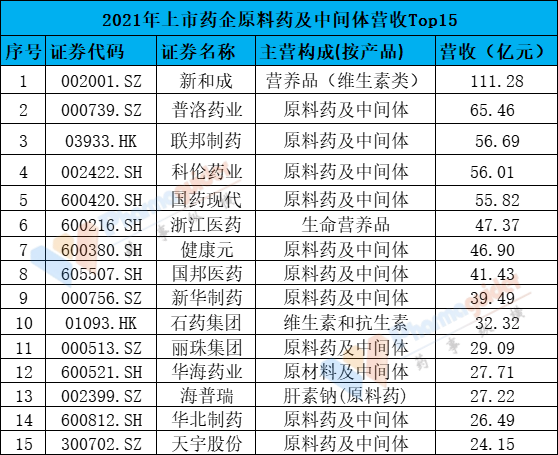 10億元體量以上營收還有:東誠藥業(yè)(22.66億元),海翔藥業(yè)(14.8億元),富祥藥業(yè)(13.66億元),東北制藥(12.95億元),聯(lián)化科技(12.17億元),復星醫(yī)藥(11.35億元)等。