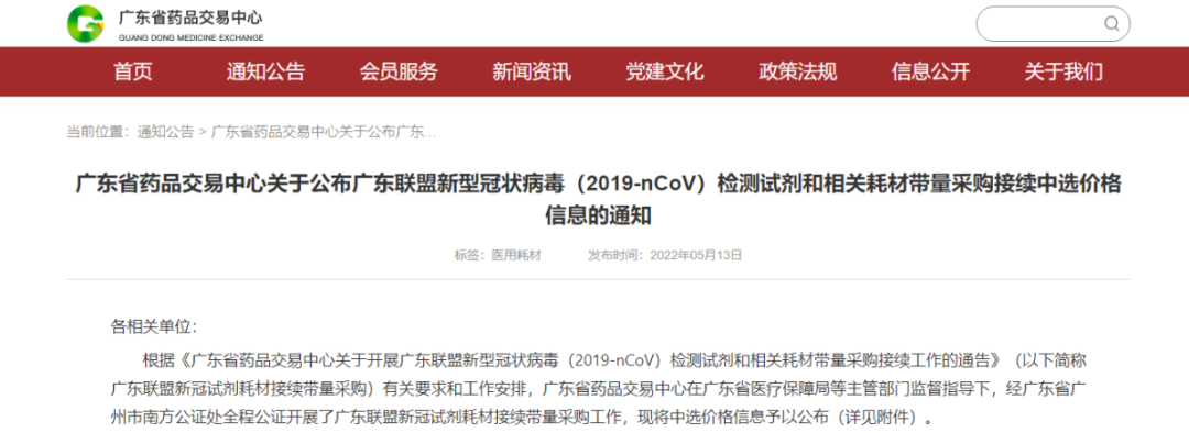 5月13日,廣東省發(fā)布新冠檢測(cè)試劑、耗材等相關(guān)產(chǎn)品聯(lián)盟帶量采購(gòu)接續(xù)工作的通知。本次中選結(jié)果:普通核酸最低報(bào)價(jià)3.2元,抗原自測(cè)最低報(bào)價(jià)3.91元。