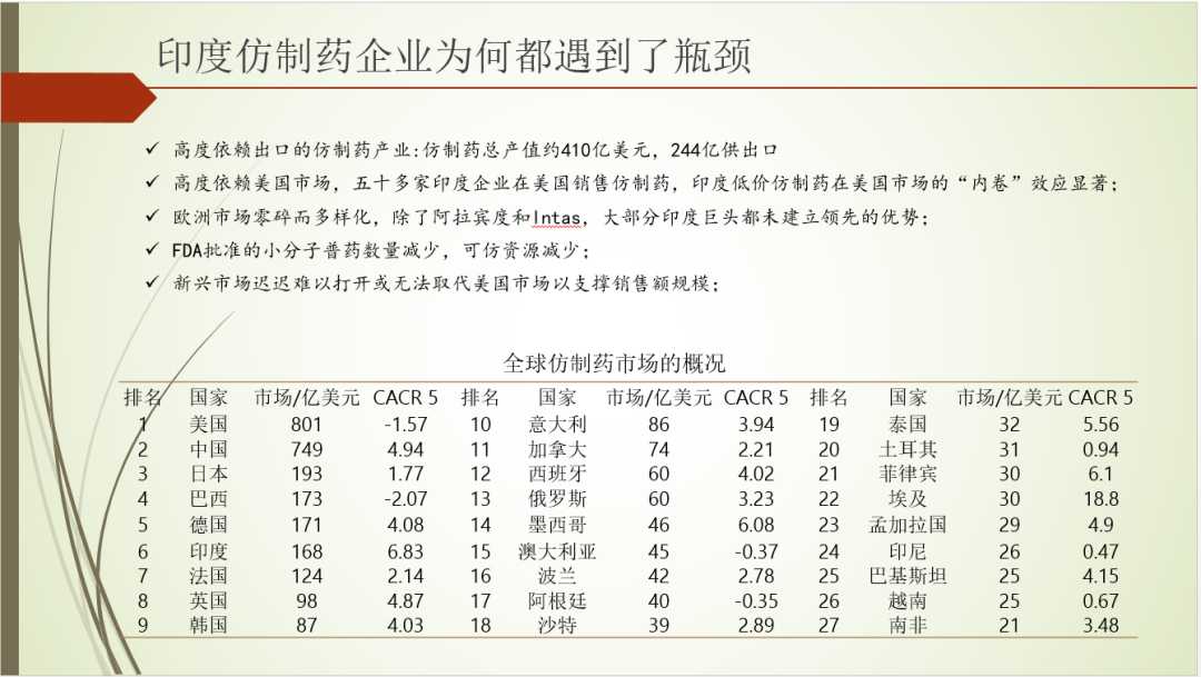 1、美國(guó)市場(chǎng)持續(xù)萎縮,而印度仿制藥企業(yè)普遍高度依賴美國(guó)市場(chǎng);