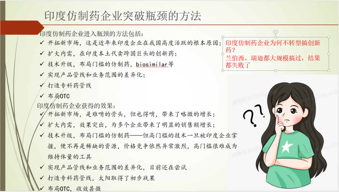 印度仿制藥企業(yè)的發(fā)展瓶頸也將為我國(guó)仿制藥的出海之路帶來(lái)更多挑戰(zhàn),而且這種瓶頸,我國(guó)藥企也將面臨,有心者需要未雨綢繆。