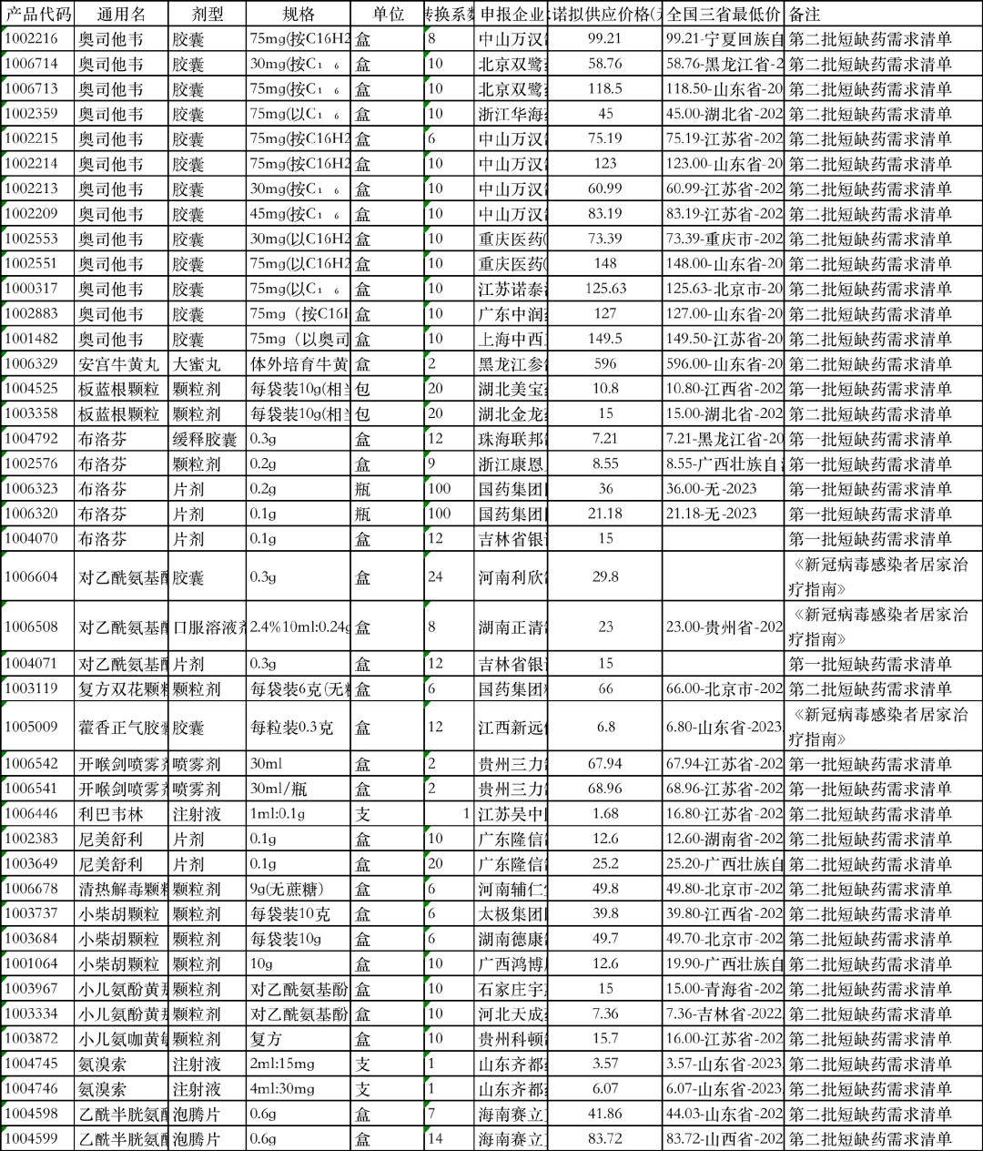 公布的42個(gè)掛網(wǎng)藥品清單中,除了奧司他韋膠囊、安宮牛黃丸,還有布洛芬、對乙酰氨基酚、小柴胡顆粒、氨溴索、藿香正氣水等,涉及江蘇吳中、太極集團(tuán)、華海藥業(yè)等30家藥企。