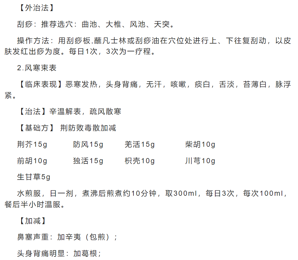 2023年云南省季節(jié)性流感中醫(yī)藥防治方案(試行)(部分)
