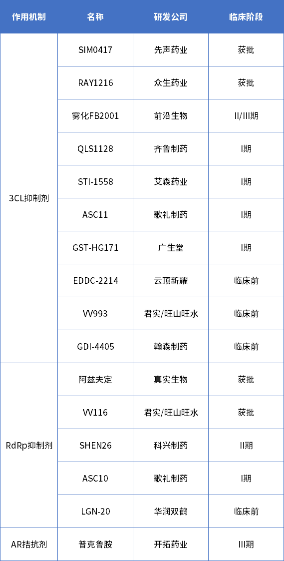 表3 國產(chǎn)在研新冠口服藥