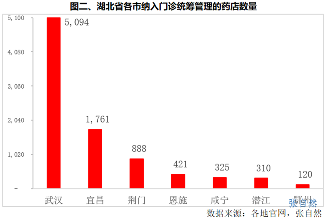 武漢對(duì)個(gè)賬分開(kāi)反映最強(qiáng)烈,湖北是納入門(mén)診統(tǒng)籌管理藥店數(shù)量最多的省份,其屬下各市納入門(mén)診統(tǒng)籌管理的藥店數(shù)量如下: