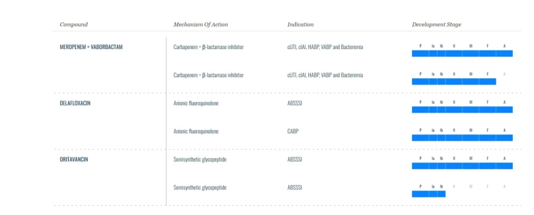 德拉沙星是一種陰離子氟喹諾酮類藥物(FQ),與其他氟喹諾酮類藥物相比,具有更好的特性和安全性。它通過平衡抑制細菌DNA復制、轉錄、修復和重組所需的細菌拓撲異構酶IV和DNA回旋酶(拓撲異構酶II)發(fā)揮作用。目前已在美國和歐盟獲批用于治療成人急性細菌性皮膚和皮膚結構感染(ABSSSI);在美國用獲批于治療社區(qū)獲得性細菌性肺炎(CABP);2021年4月,在歐盟被批準用于治療CABP。