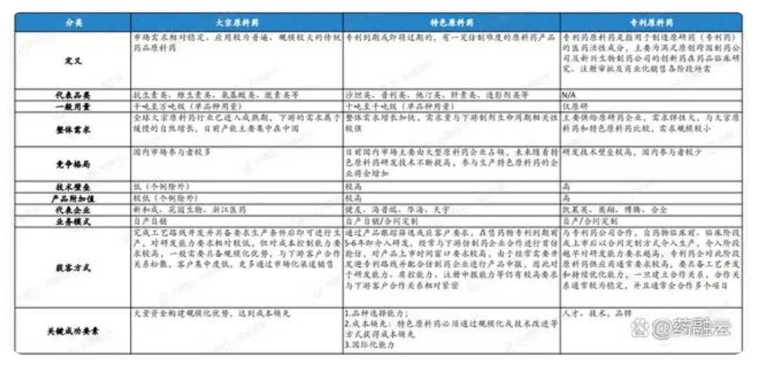 大宗、特色、專(zhuān)利原料藥對(duì)比分析