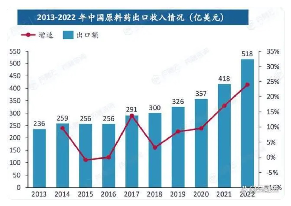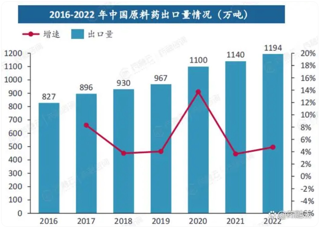 中國(guó)作為原料藥出口大國(guó),在全球原料藥市場(chǎng)中占有重要地位。近年來(lái),中國(guó)原料藥出口規(guī)模持續(xù)增長(zhǎng),尤其是在疫情爆發(fā)后,出口收入增速明顯加快。